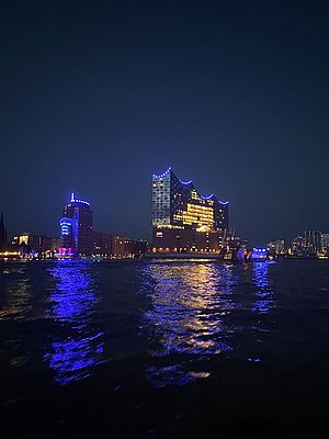 Neben der Verantwortung auf dem Wasser gab es für uns auch ein besonderes Erlebnis: die eindrucksvollen Lichtshows des Blue Port, die den Hafen in ein magisches Blau tauchten. Ein Gänsehautmoment – auch für uns Retterinnen und Retter.