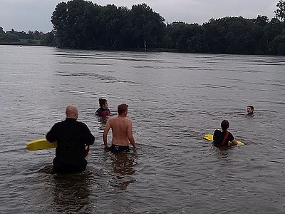 Das Wetter wollte nicht so richtig: Eine Gewitterfront zog zwar gen Hamburger Osten weg, dafür kam aber der Regen. Aber wenn man eh im Wasser übt, kann es von ober auch noch nass sein.